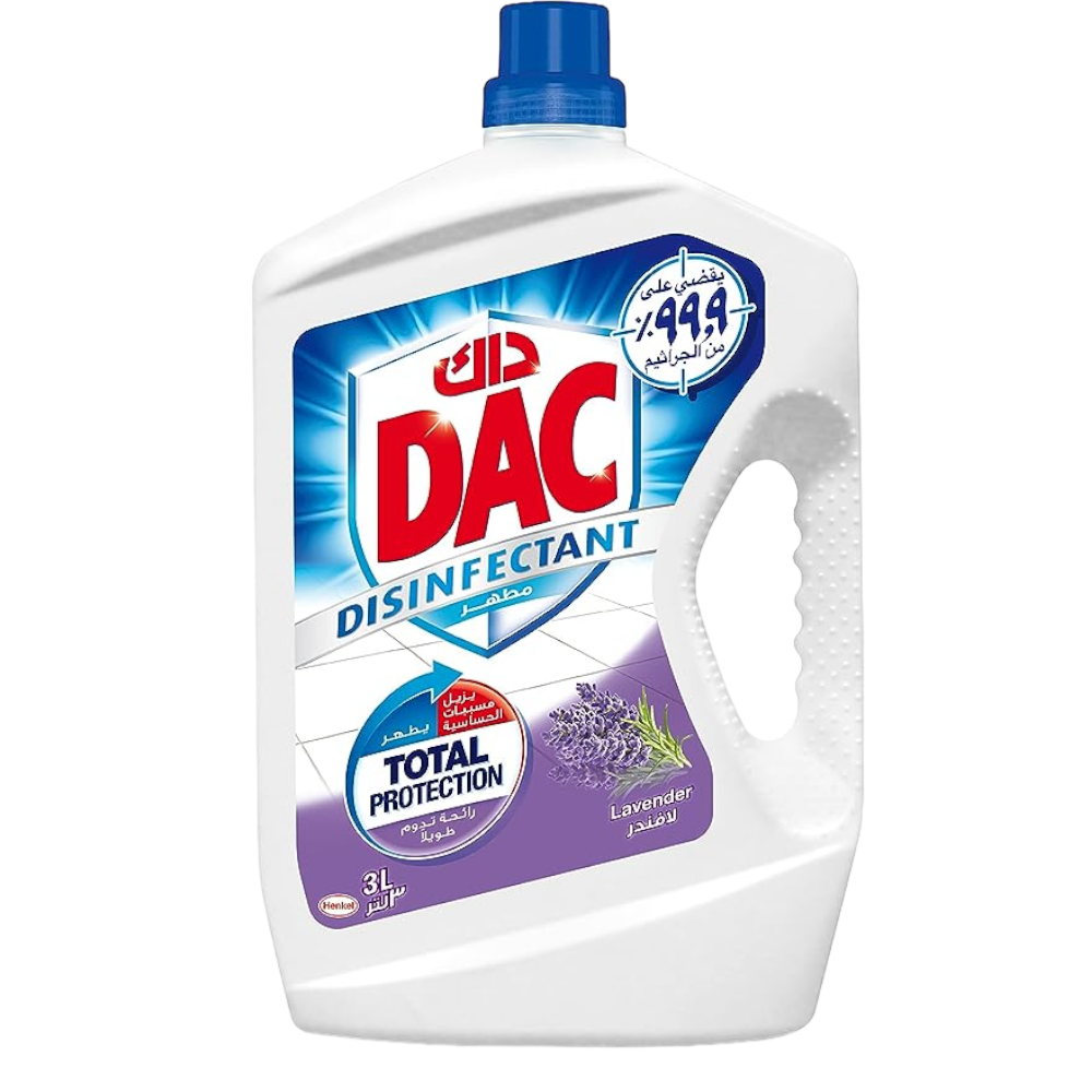 معقم داك يزيل البقع الصعبة واللطخات في وقت قصير. ينشر هذا المطهر رائحة اللافندر الرائعة في كل مكان. يعتبر هذا المطهر من داك هو الحل المثالي لكافة أغراض التنظيف. يزيل البقع بفعالية ويعمل بشكلٍ جيد على الأسطح القاسية وغير المسامية. صنع هذا المنظف متعدد الأغراض من جزيئات أوبا-تك وتركيبة تعتيم قوية تزيل الجراثيم وتوف حماية كاملة تدوم لمدة 24 ساعة. لا ينظف هذا المطهر السائل منزلك ويطهره فحسب، بل ينشر في كافة أنحائه العطر المنعش. علاوة على ذلك، يمكنه تنظيف مجموعة متنوعة من البقع على الأسطح المختلفة