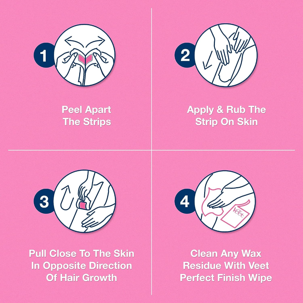 •ضعي الشريحة على المكان المراد إزالة الشعر منه ثم افركي الشريحة جيدا في اتجاه نمو الشعر ثم قمي بنزع الشريحة بسرعة عكس اتجاه نمو الشعر