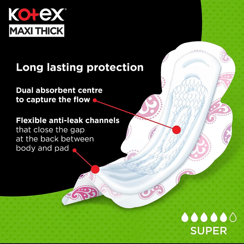• إن فوط كوتكس ماكسي السميكة هي رفيقتك الأمينة نهارًا عندما يكون التدفق كثيفًا.